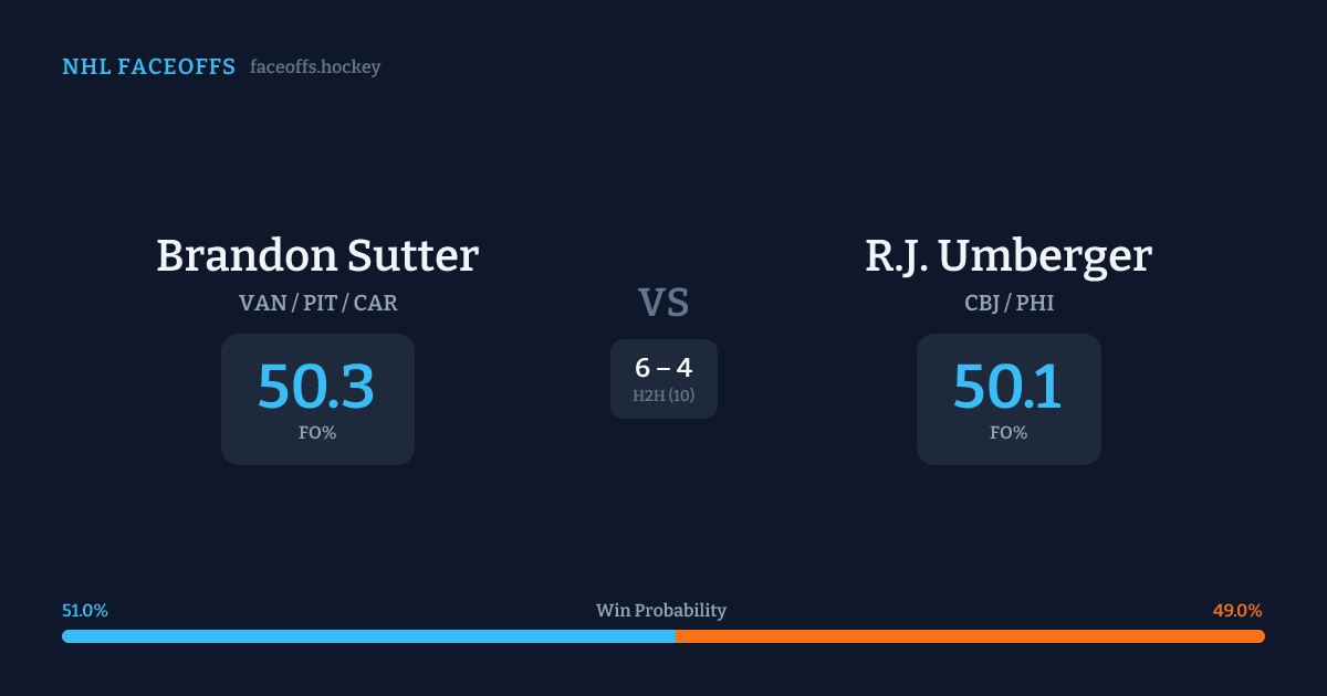 Brandon Sutter vs R.J. Umberger — Faceoff Head-to-Head