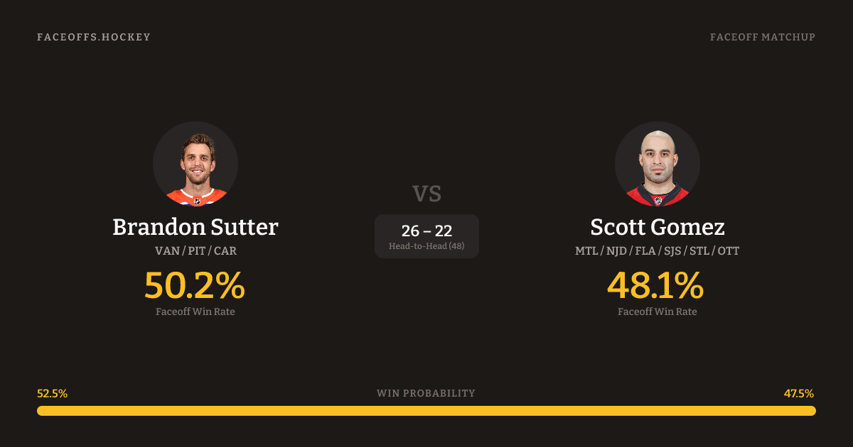 Brandon Sutter vs Scott Gomez — Faceoff Head-to-Head