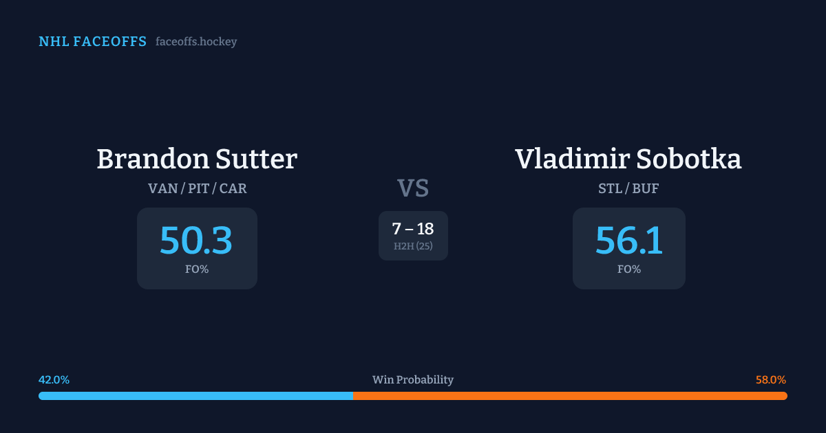 Brandon Sutter vs Vladimir Sobotka — Faceoff Head-to-Head