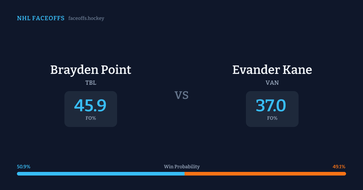 Brayden Point vs Evander Kane — Faceoff Head-to-Head