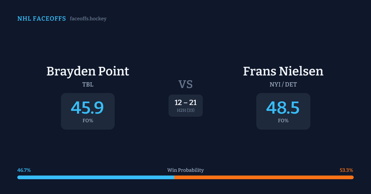 Brayden Point vs Frans Nielsen — Faceoff Head-to-Head