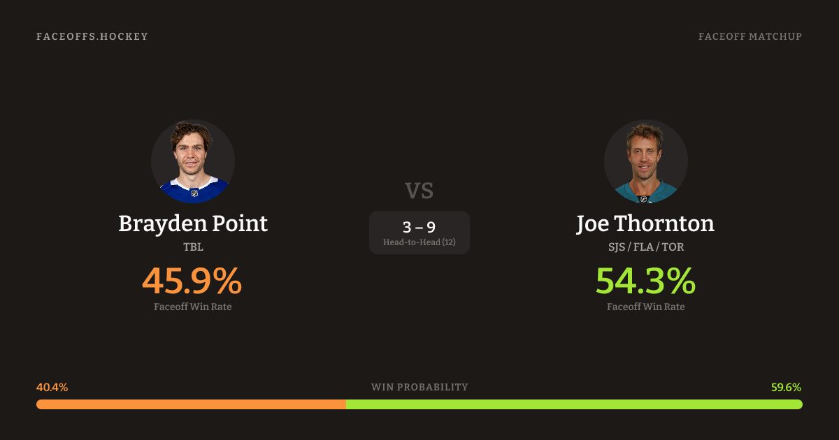 Brayden Point vs Joe Thornton — Faceoff Head-to-Head
