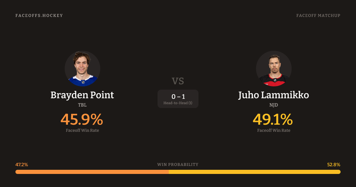 Brayden Point vs Juho Lammikko — Faceoff Head-to-Head