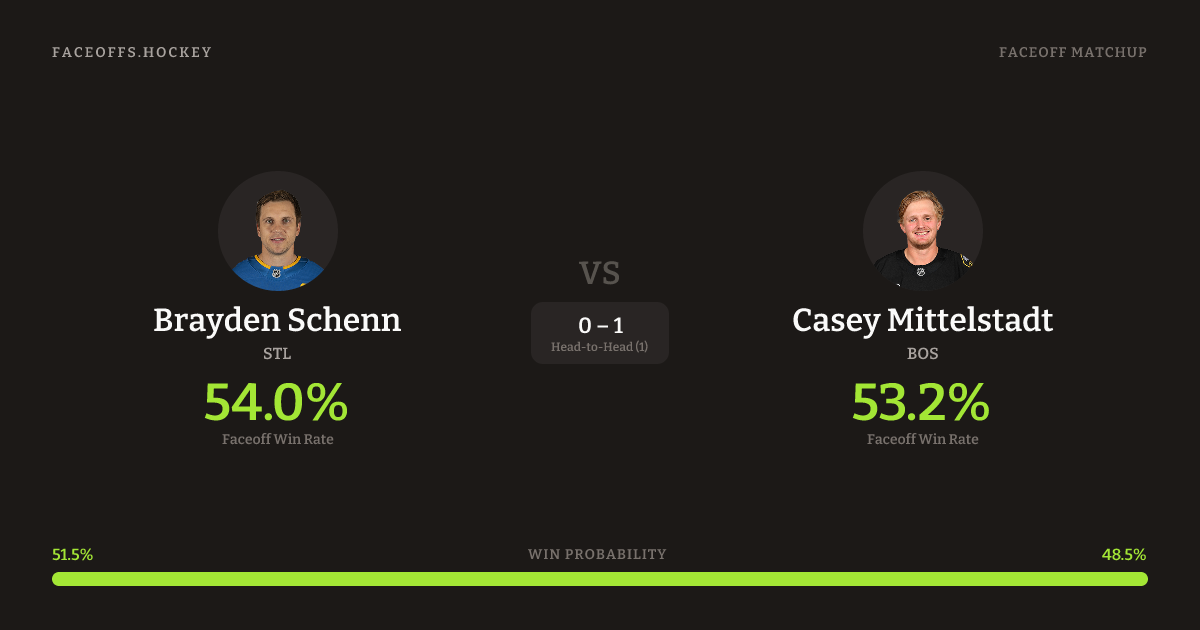 Brayden Schenn vs Casey Mittelstadt — Faceoff Head-to-Head