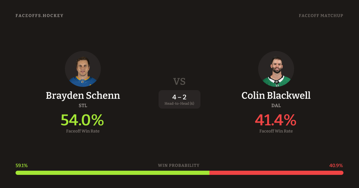 Brayden Schenn vs Colin Blackwell — Faceoff Head-to-Head