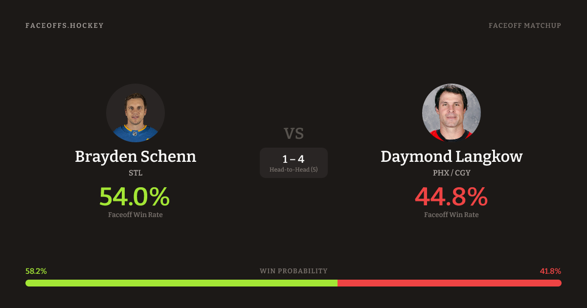 Brayden Schenn vs Daymond Langkow — Faceoff Head-to-Head