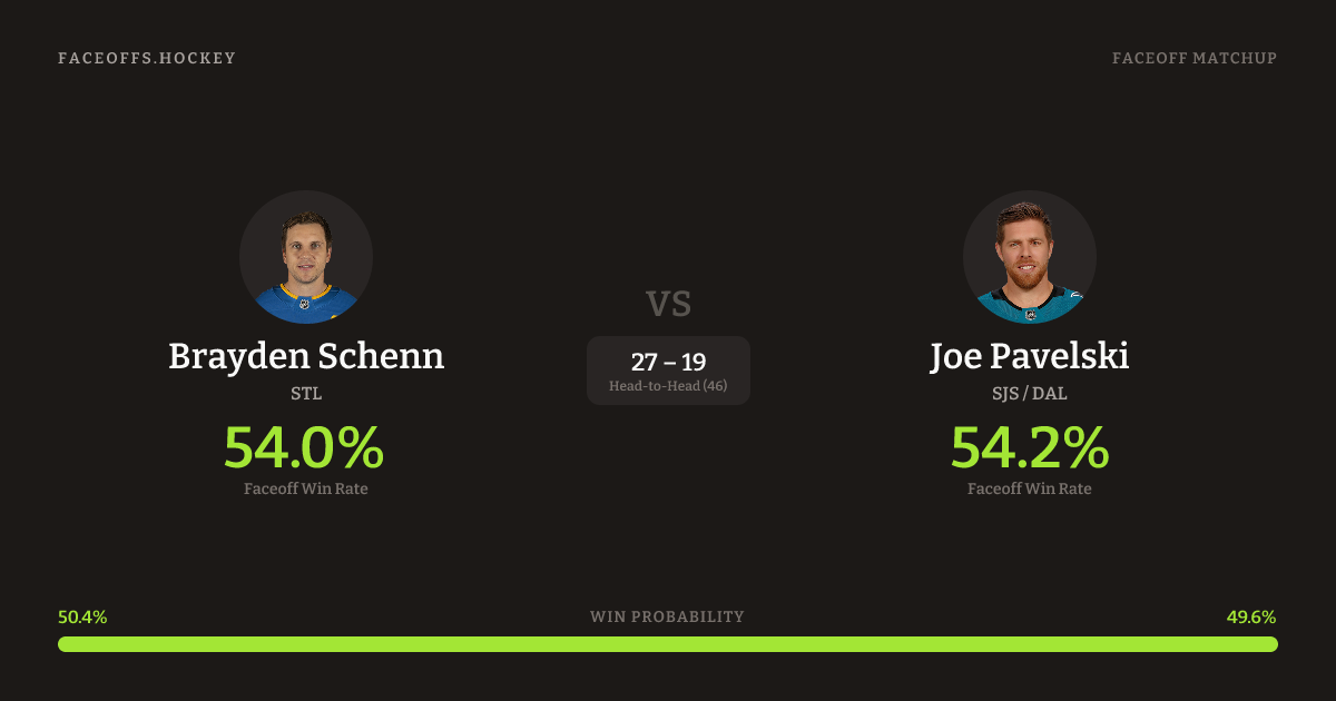 Brayden Schenn vs Joe Pavelski — Faceoff Head-to-Head