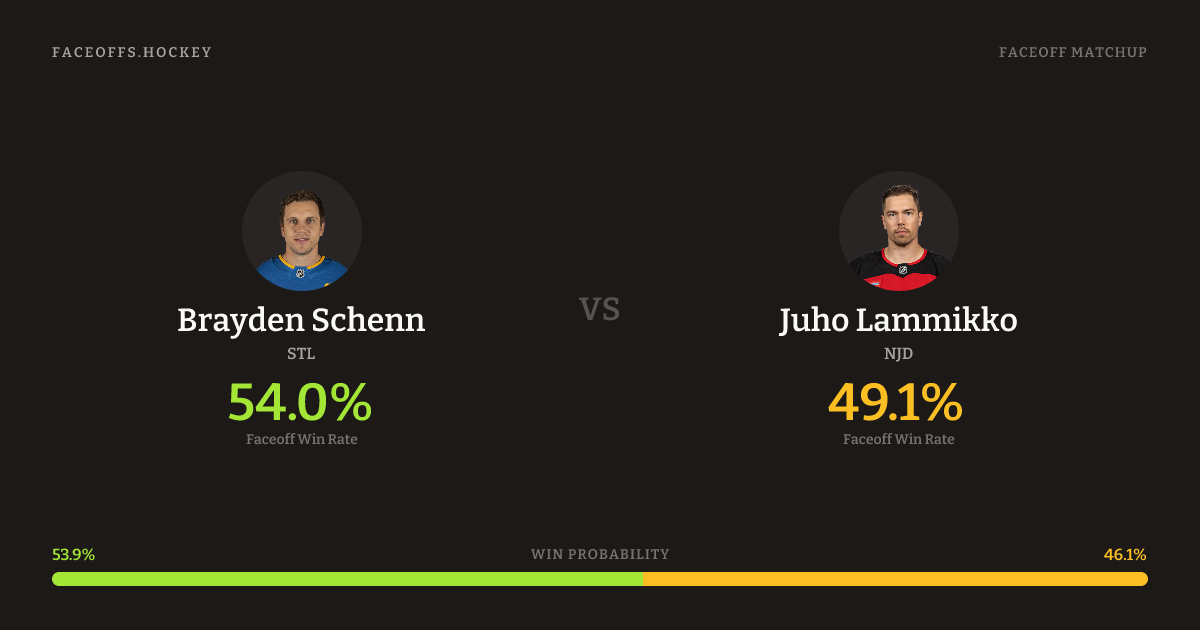 Brayden Schenn vs Juho Lammikko — Faceoff Head-to-Head