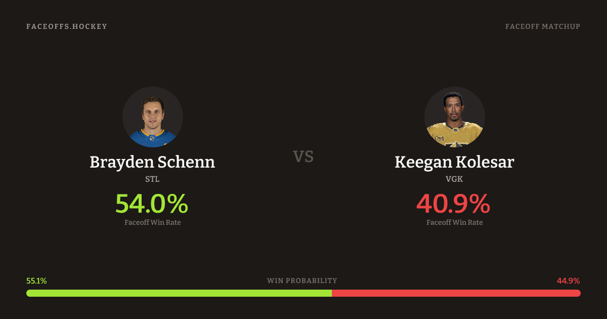 Brayden Schenn vs Keegan Kolesar — Faceoff Head-to-Head