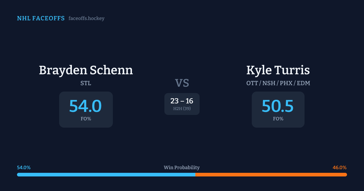 Brayden Schenn vs Kyle Turris — Faceoff Head-to-Head