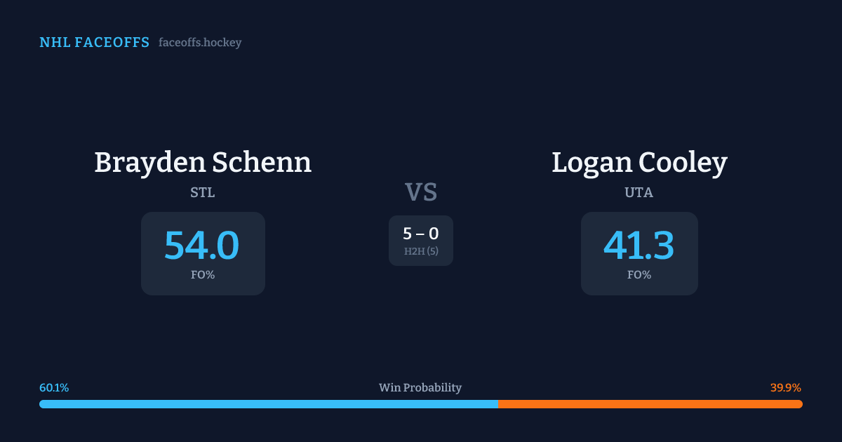 Brayden Schenn vs Logan Cooley — Faceoff Head-to-Head