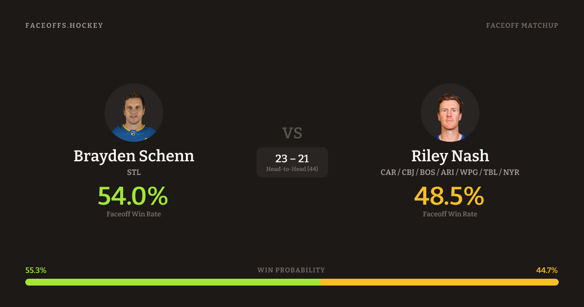 Brayden Schenn vs Riley Nash — Faceoff Head-to-Head