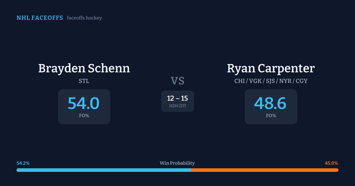Brayden Schenn vs Ryan Carpenter — Faceoff Head-to-Head
