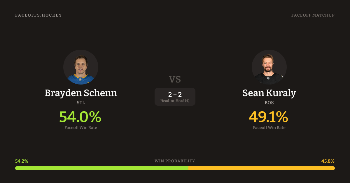 Brayden Schenn vs Sean Kuraly — Faceoff Head-to-Head