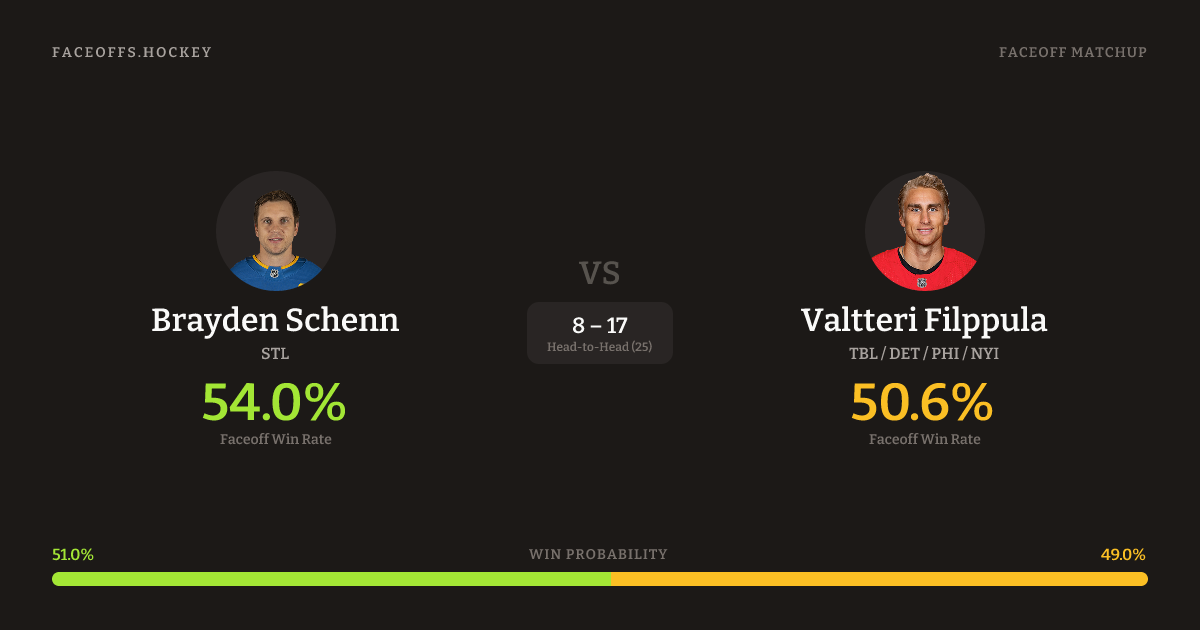 Brayden Schenn vs Valtteri Filppula — Faceoff Head-to-Head