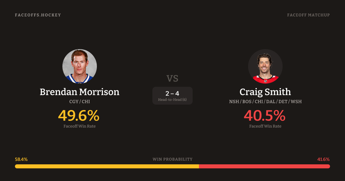 Brendan Morrison vs Craig Smith — Faceoff Head-to-Head