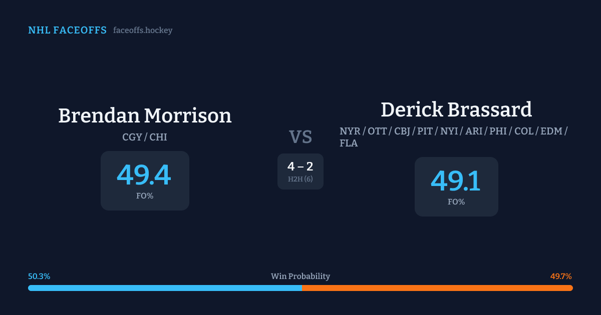 Brendan Morrison vs Derick Brassard — Faceoff Head-to-Head