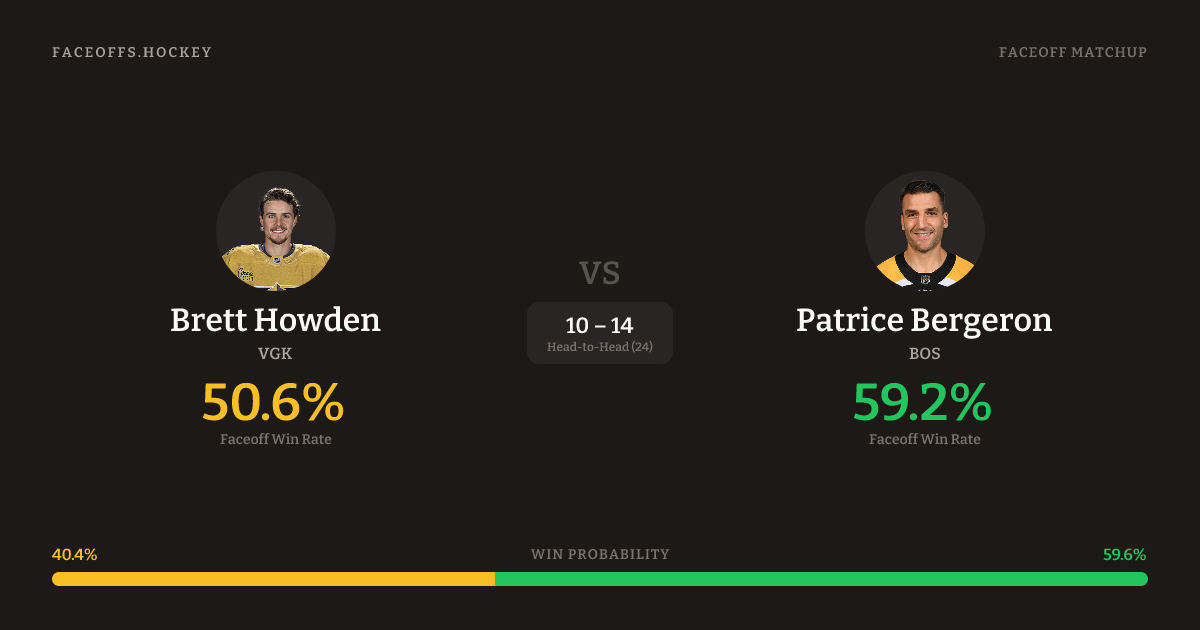 Brett Howden vs Patrice Bergeron — Faceoff Head-to-Head
