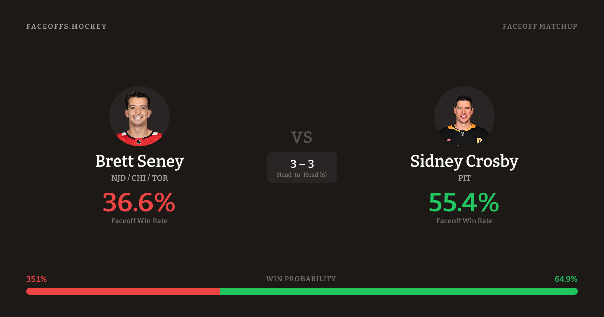 Brett Seney vs Sidney Crosby — Faceoff Head-to-Head