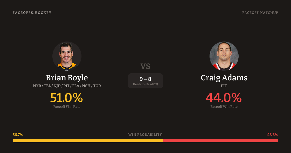 Brian Boyle vs Craig Adams — Faceoff Head-to-Head