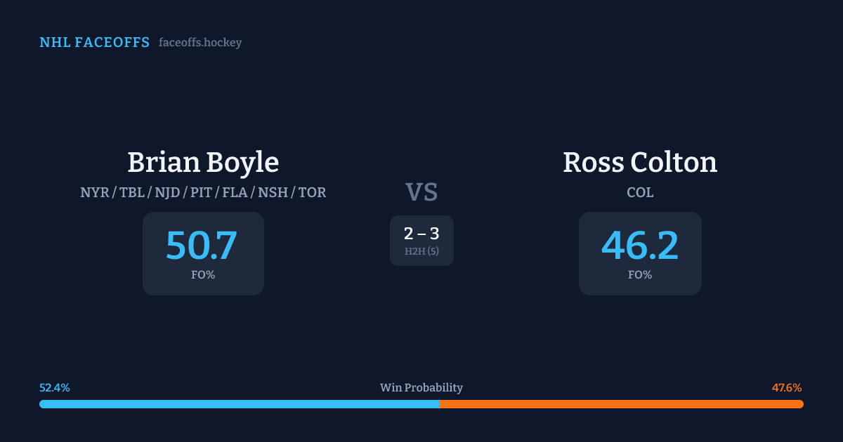 Brian Boyle vs Ross Colton — Faceoff Head-to-Head