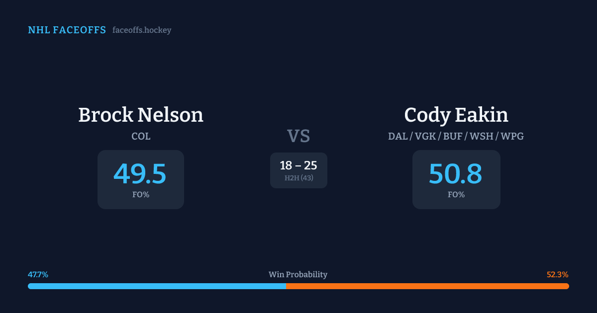 Brock Nelson vs Cody Eakin — Faceoff Head-to-Head