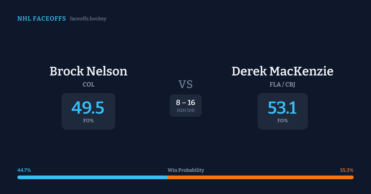 Brock Nelson vs Derek MacKenzie — Faceoff Head-to-Head