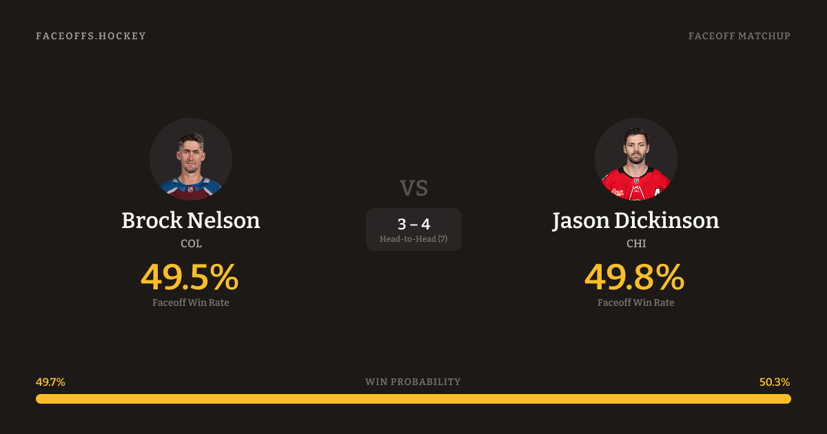 Brock Nelson vs Jason Dickinson — Faceoff Head-to-Head