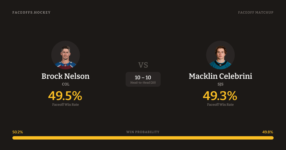 Brock Nelson vs Macklin Celebrini — Faceoff Head-to-Head
