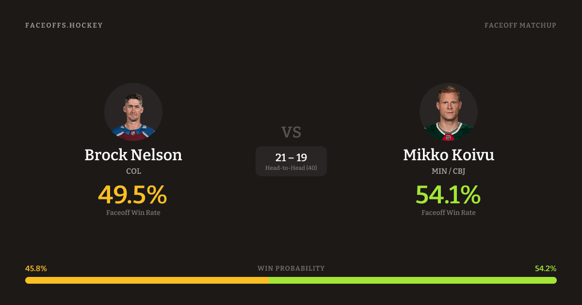 Brock Nelson vs Mikko Koivu — Faceoff Head-to-Head