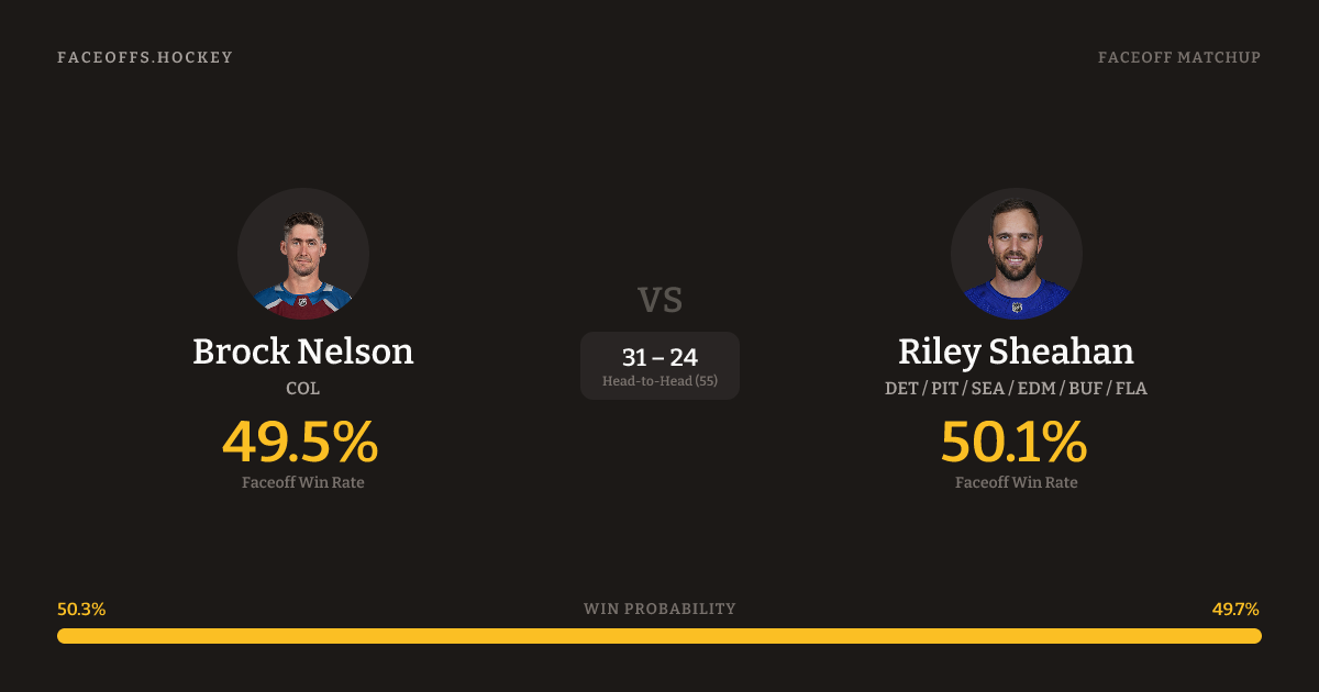 Brock Nelson vs Riley Sheahan — Faceoff Head-to-Head