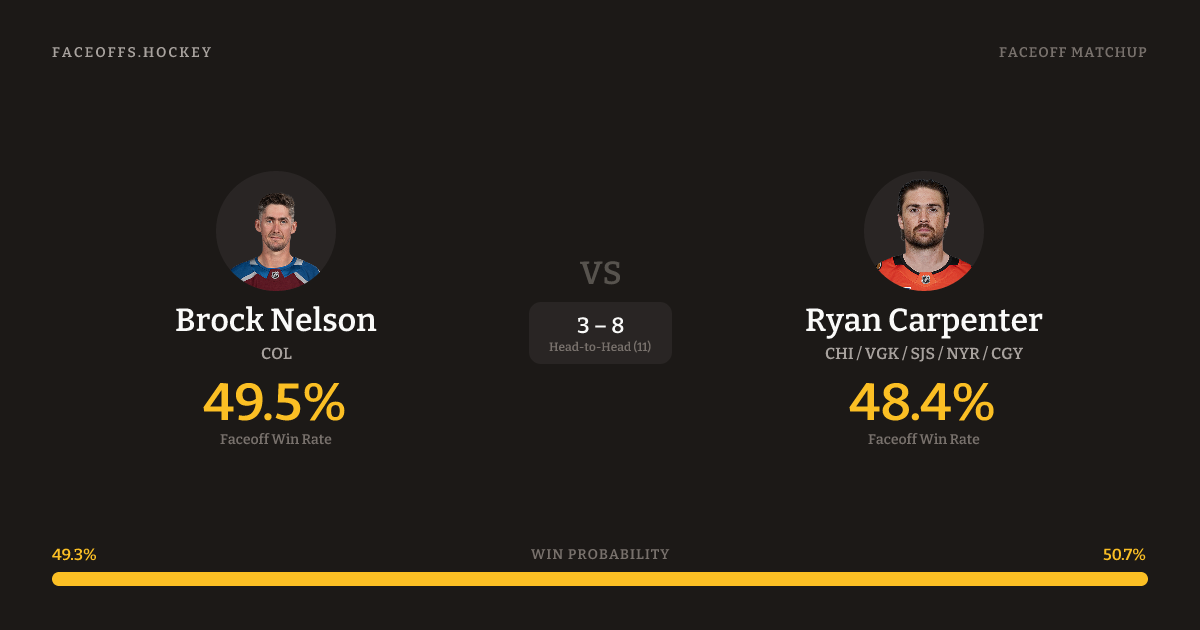 Brock Nelson vs Ryan Carpenter — Faceoff Head-to-Head