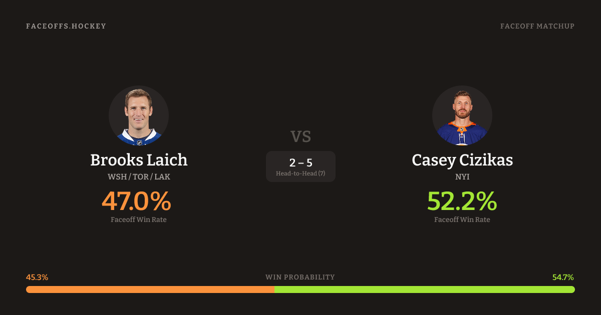 Brooks Laich vs Casey Cizikas — Faceoff Head-to-Head