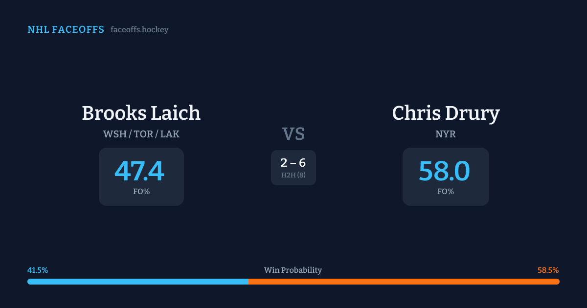 Brooks Laich vs Chris Drury — Faceoff Head-to-Head