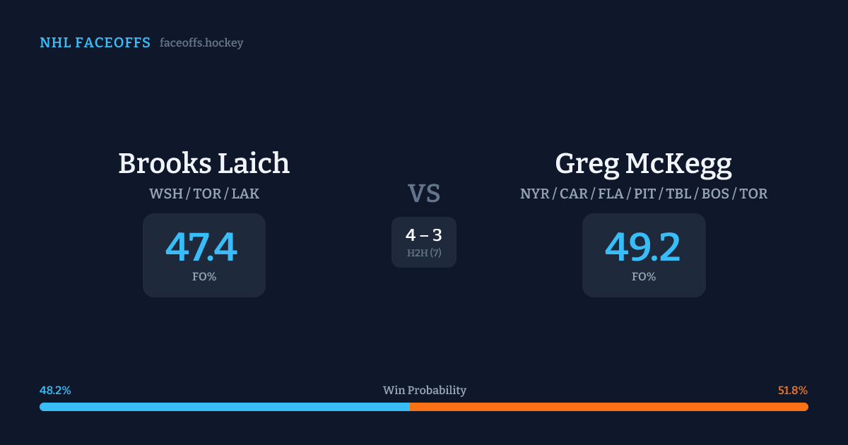 Greg McKegg holds a +4.7% FO% edge overall. Laich wins 40.6% vs left-shot opponents — McKegg shoots left.