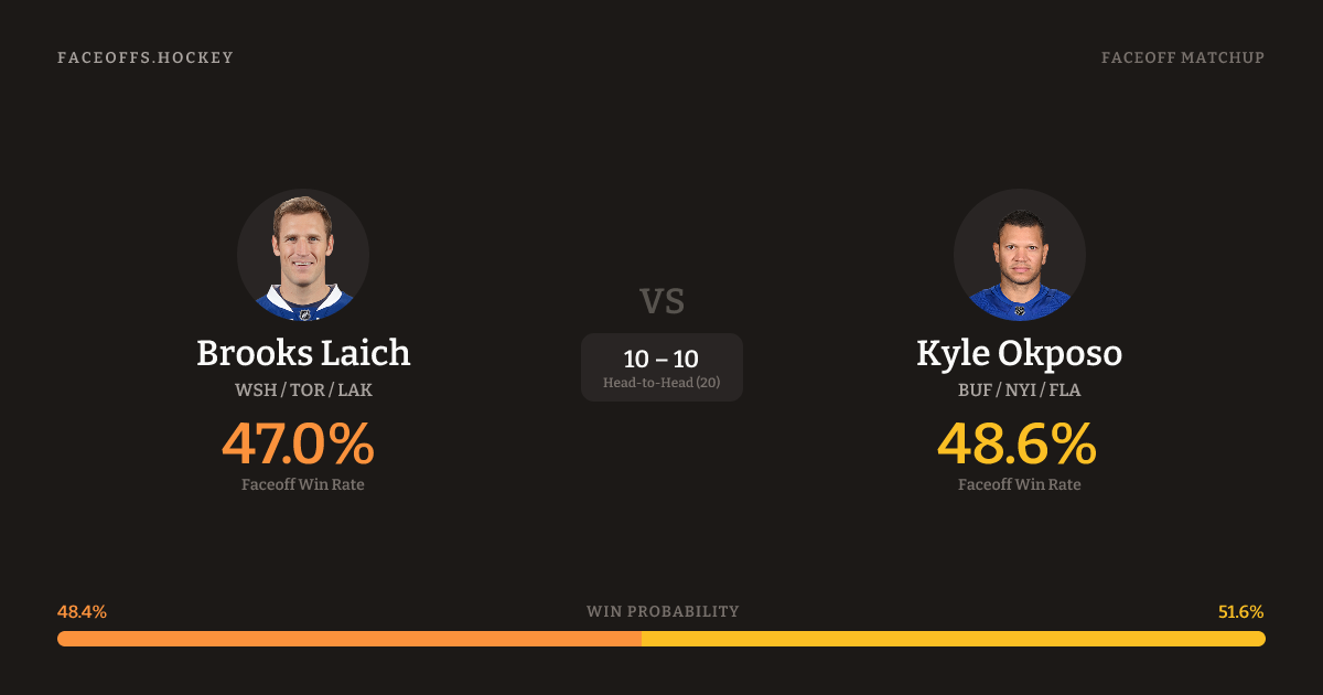 Brooks Laich vs Kyle Okposo — Faceoff Head-to-Head