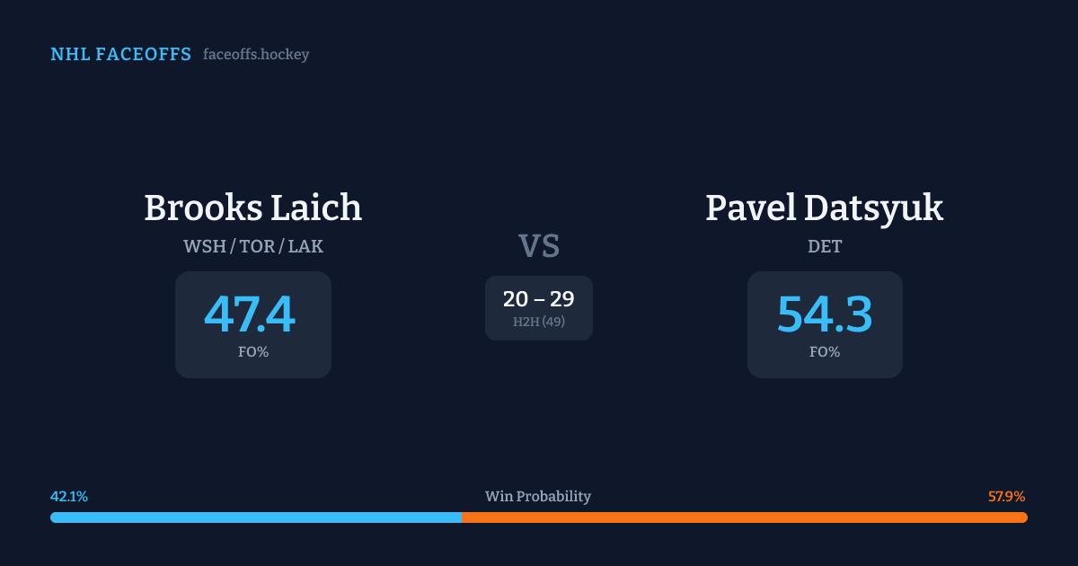 Brooks Laich vs Pavel Datsyuk — Faceoff Head-to-Head