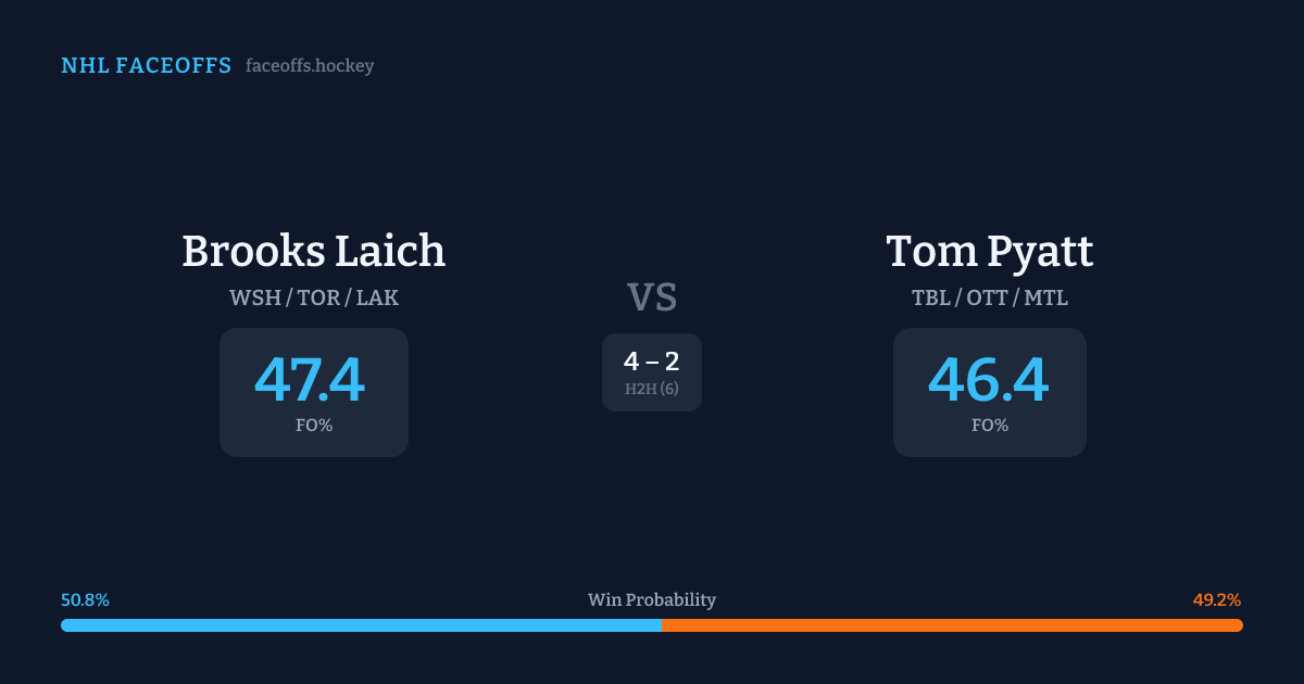 Brooks Laich vs Tom Pyatt — Faceoff Head-to-Head