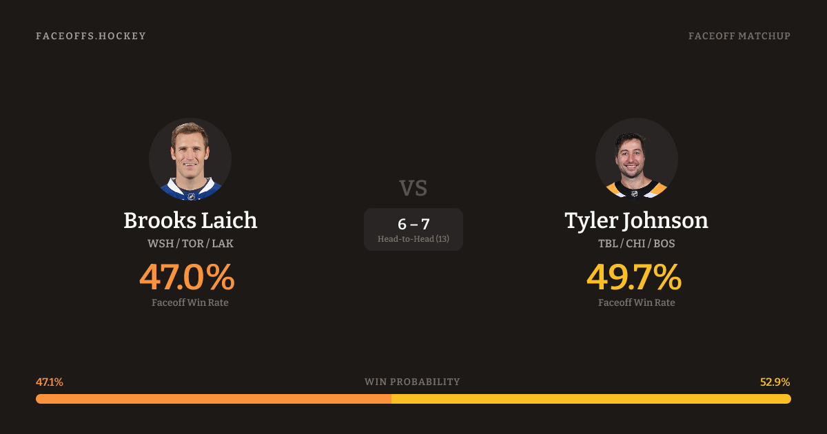 Brooks Laich vs Tyler Johnson — Faceoff Head-to-Head