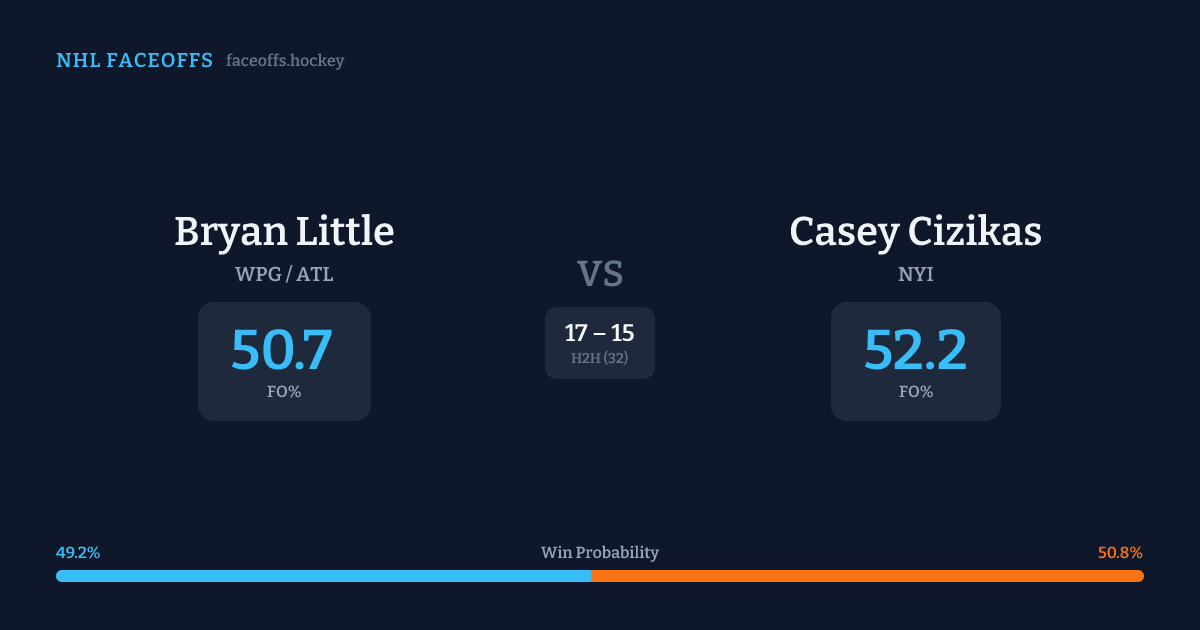 Bryan Little vs Casey Cizikas — Faceoff Head-to-Head