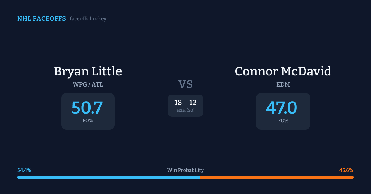 Bryan Little vs Connor McDavid — Faceoff Head-to-Head
