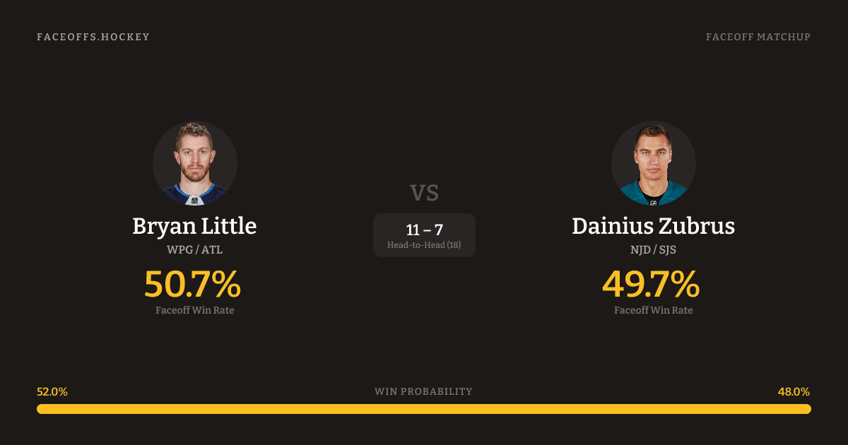 Bryan Little vs Dainius Zubrus — Faceoff Head-to-Head
