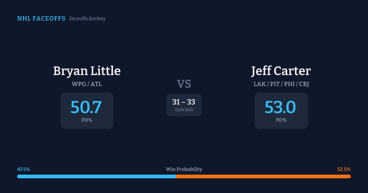 Bryan Little vs Jeff Carter — Faceoff Head-to-Head