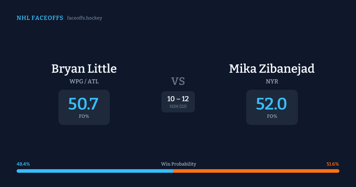 Bryan Little vs Mika Zibanejad — Faceoff Head-to-Head
