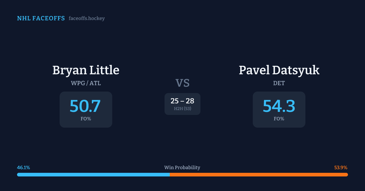Bryan Little vs Pavel Datsyuk — Faceoff Head-to-Head