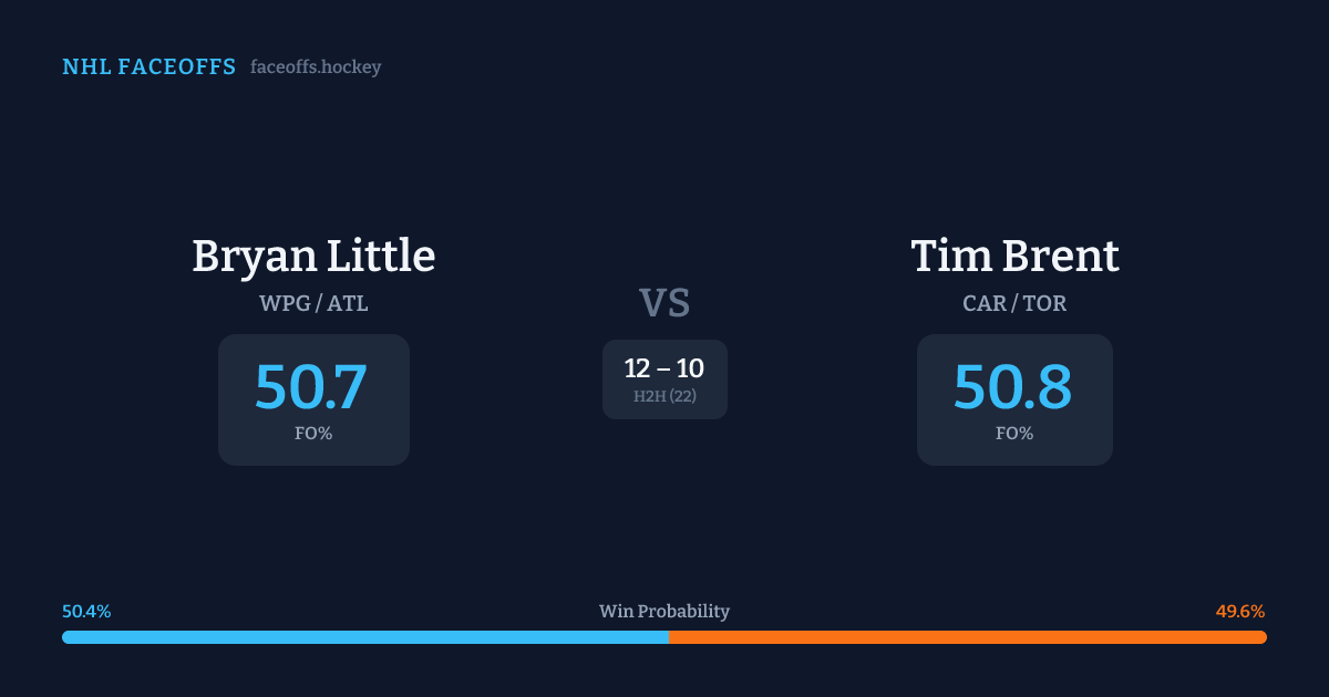 Bryan Little vs Tim Brent — Faceoff Head-to-Head