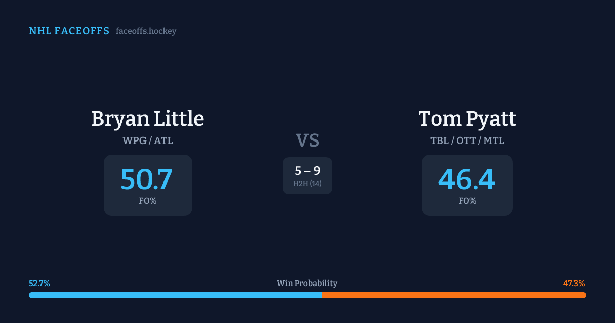 Bryan Little vs Tom Pyatt — Faceoff Head-to-Head