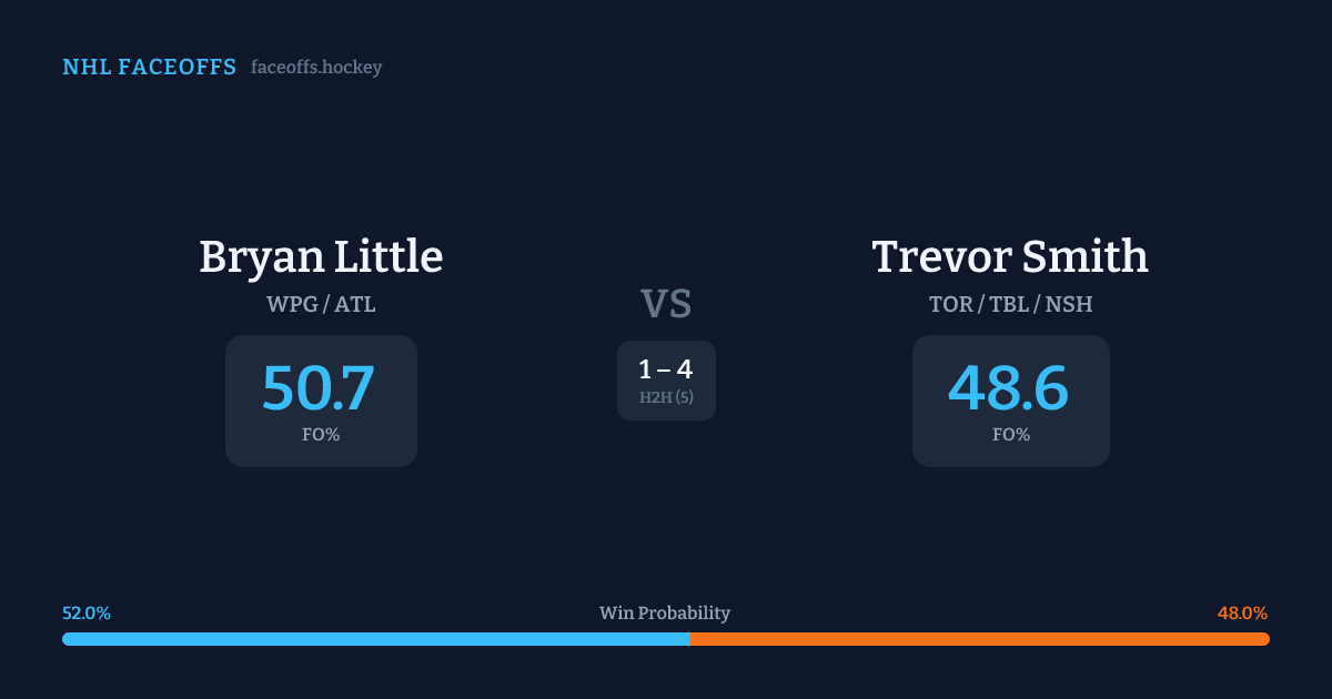 Bryan Little vs Trevor Smith — Faceoff Head-to-Head