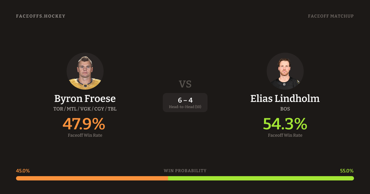 Byron Froese vs Elias Lindholm — Faceoff Head-to-Head