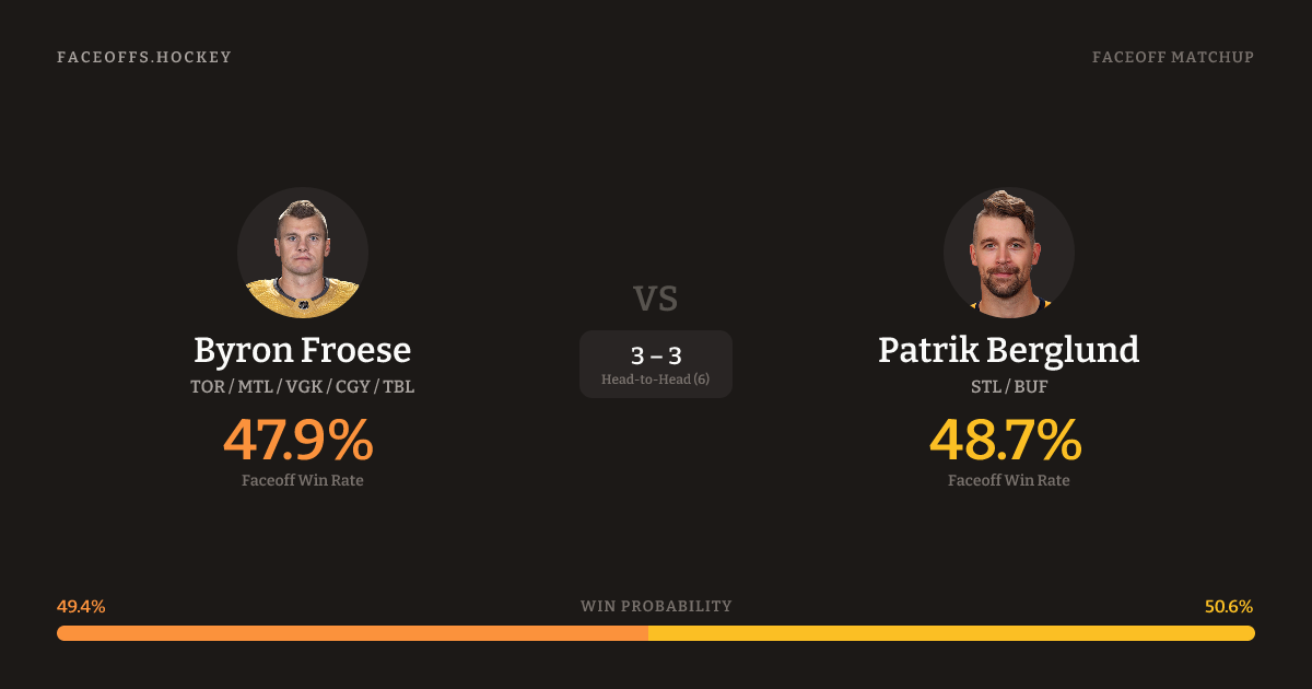 Byron Froese vs Patrik Berglund — Faceoff Head-to-Head